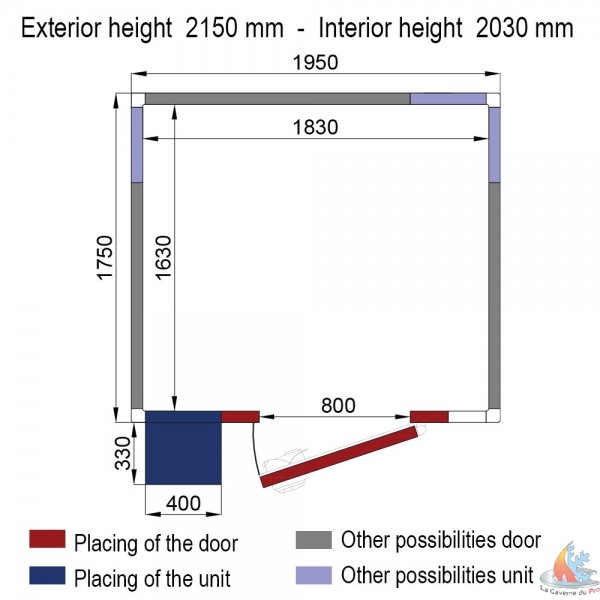 Dimensions intérieures 1830 x 1630 xh 2030 mm