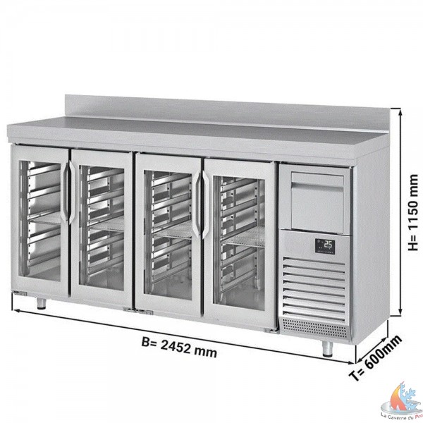 Arrirère bar inox 4 portes vitrée, tiroir à café 690 litres 2452x600x1050