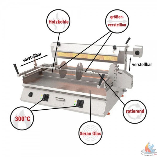 - Dimensions de la viande Broche max : B x Ø 850x360 mm