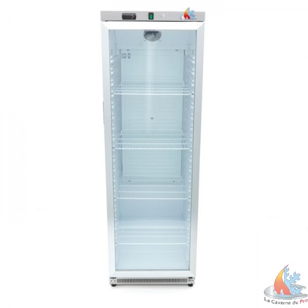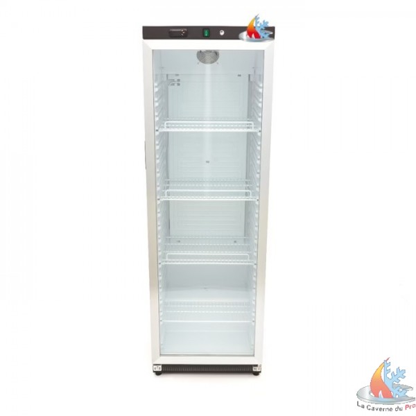 Ce réfrigérateur professionnel à porte vitrée a une capacité de 400 litres. Il est équipé d'une porte à fermeture automatique, d'un éclairage LED et de trois clayettes réglables en hauteur pour faciliter la personnalisation de votre aménagement. Grâce à ses quatre roues, vous pouvez également le déplacer au meilleur endroit dans la cuisine.