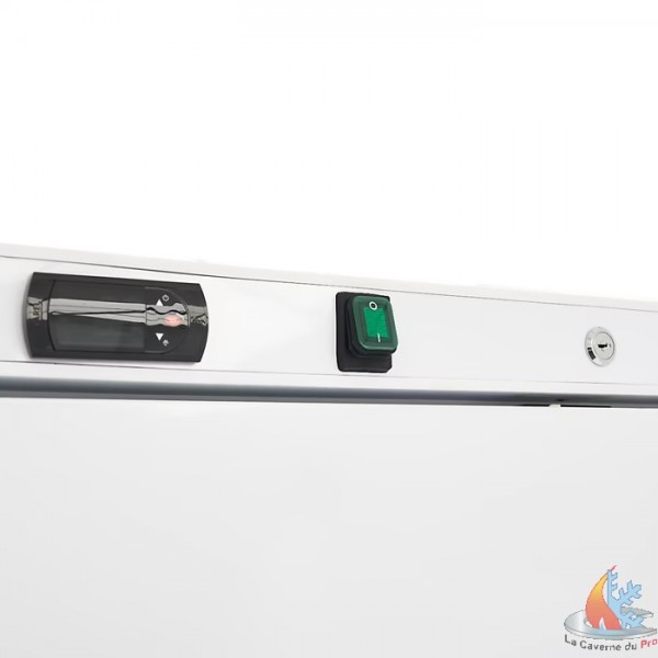 Ce réfrigérateur est doté d'un contrôle électronique de la température et d'un affichage numérique convivial, qui facilite la lecture et le réglage de la température. Les produits peuvent être refroidis dans une large plage de température. Ce réfrigérateur utilise un système de refroidissement statique avec ventilateur, ce qui garantit que l'air à l'intérieur du réfrigérateur circule et que le contenu est refroidi de manière homogène. Les portes à fermeture automatique évitent les écarts de température importants. Ce réfrigérateur utilise le réfrigérant R600, exempt de CFC, et est équipé d'un bac de récupération de l'eau. Pour une mobilité aisée, ce réfrigérateur est soutenu par quatre roues, dont deux sont équipées de freins pour sécuriser sa position.