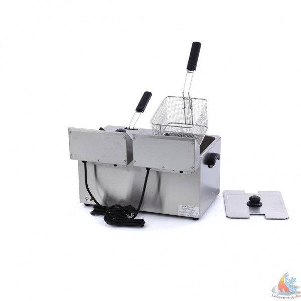 - Lorsque vous travaillez dans une boulangerie, une poissonnerie, un food truck ou tout autre service de restauration, vous souhaitez servir les clients le plus rapidement possible. Cette friteuse double est parfaitement adaptée à cet objectif. Avec une capacité totale de 16 litres, vous pouvez frire les produits deux fois plus vite et servir les commandes plus rapidement que jamais. Il s'agit également d'une friteuse de table compacte qui peut être placée sur n'importe quel comptoir ou table. Grâce au thermostat convivial, vous pouvez porter l'huile de chaque friteuse à la température précise, séparément, dans une plage comprise entre 0°C et 185°C. En outre, la friteuse est équipée d'un témoin lumineux pour que vous sachiez exactement quand l'huile est suffisamment chaude.