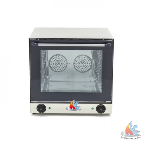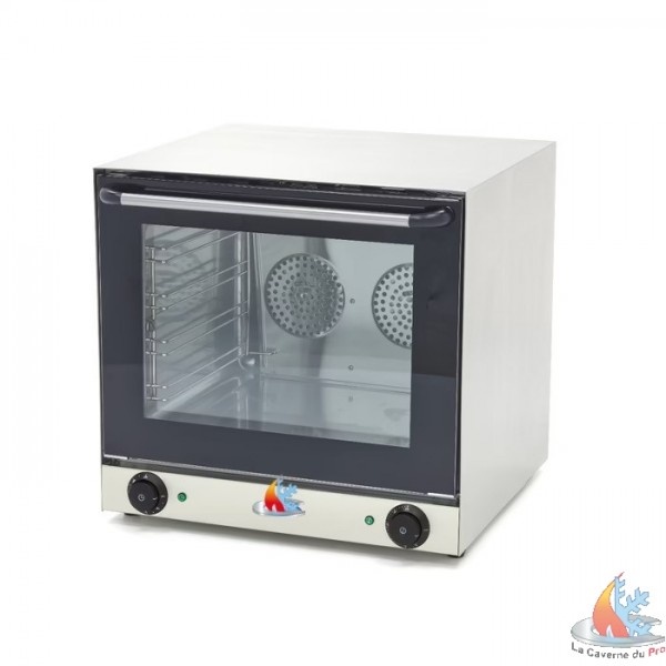 - La chaleur est répartie très efficacement dans ce four à convection, de sorte que la température est uniforme dans tout l'appareil. Les témoins lumineux indiquent quand le four est à la bonne température. Avec ce four à convection professionnel, le temps de cuisson est plus court qu'avec un four traditionnel. La porte du four à convection est amovible et munie d'un double vitrage athermique. L'utilisation est conviviale, grâce aux boutons analogiques et à la minuterie qui peut être réglée entre 0 et 120 minutes. Ce four à convection est livré en standard avec quatre plateaux de 43,5 x 31,5 cm. La distance entre les plateaux est de 7 cm.