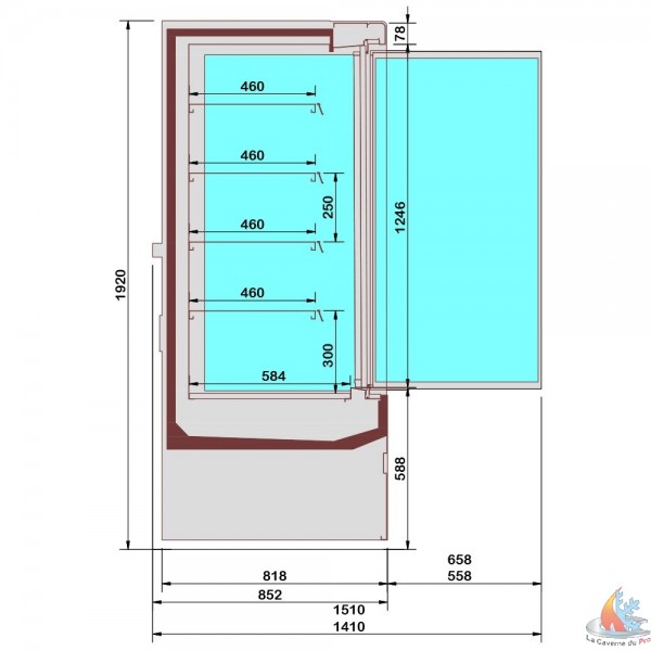 - Grâce à un large volume de présentation incluant les 4 étagères intermédiaires réfrigérées et un éclairage LED, elles vous permettent de diversifier votre offre.