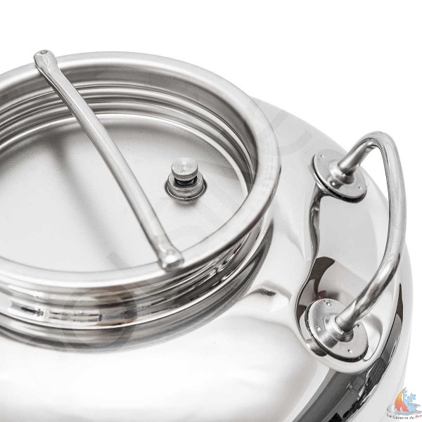- (certification NSF) pour la conservation des liquides alimentaires, avec une technique avancée de soudure tête à tête (fond soudé), qui facilite le nettoyage et évite le dépôt de matières organiques et de résidus, qui sont principalement responsables de la formation de colonies bactériennes. Le matériau utilisé est l'acier inoxydable 18/10 - AISI 304.