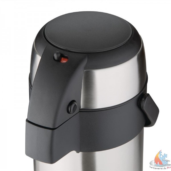 - Inox brossé double paroi. Tête et poignée en plastique noir.
