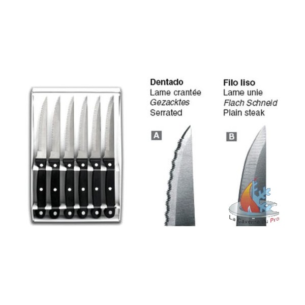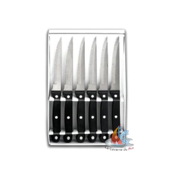 Ces 6 couteaux à steak sont très pratiques : leur lame dentée permet de couper les viandes les plus cuites. Dotés d’un manche ergonomique, ils tiennent bien en main.
