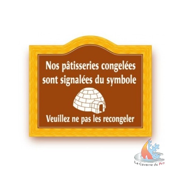 Au-delà de l’aspect réglementaire, informer le consommateur sur l’état physique des denrées alimentaires (pâtisseries décongelées) est important pour éviter des erreurs d’hygiène de base .Cette pancarte vous sera bien utile.