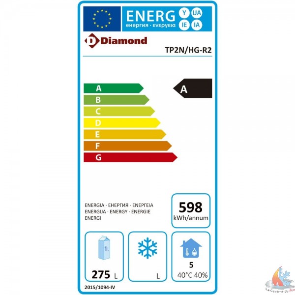 - Groupe compresseur tropicalisé (T° ambiante +43°C), incorporé dans le meuble (à droite), condenseur ventilé.