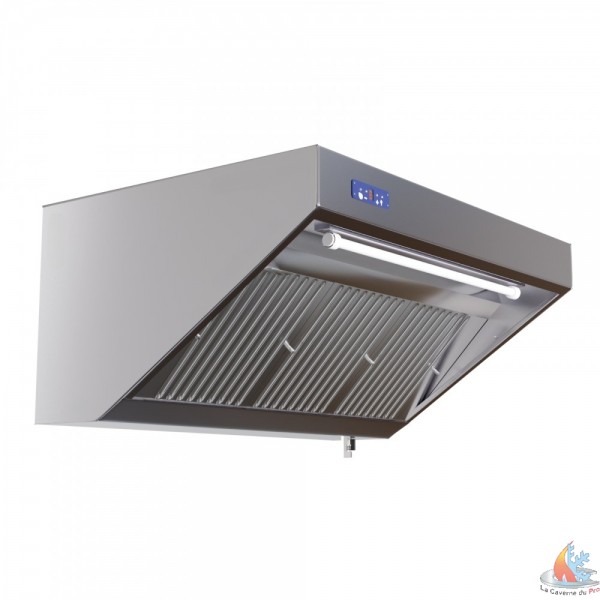Alliant performance, durabilité et facilité d'utilisation, Les capots en acier inoxydable 18/10 AISI304 avec finition satinée Scotch-Brite®, la construction avec des points de soudure, les canaux périphériques et bords intérieurs retournés, les filtres anti-graisse à labyrinthe et le robinet d'évacuation des graisses font de cette hotte un équipement complet et performant.