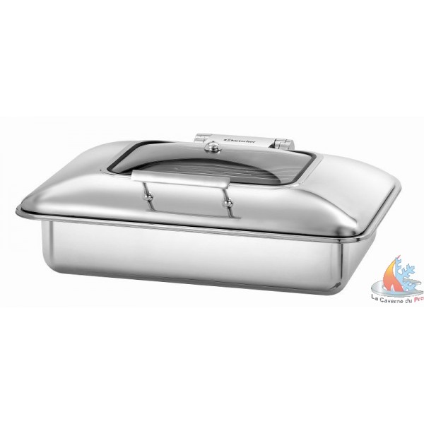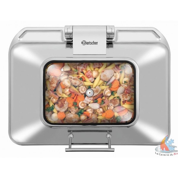 L'utilisation de ce chafing dish avec une plaque de cuisson à induction ou en vitrocéramique offre d'innombrables possibilités. La température à l'intérieur du chafing dish peut ainsi être réglée à l'aide de la plaque de cuisson externe.