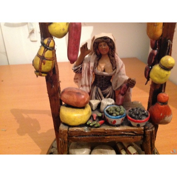 - Cet accessoire représente un stand de de vente de charcuterie sur les marches traditionnel d’Italie .