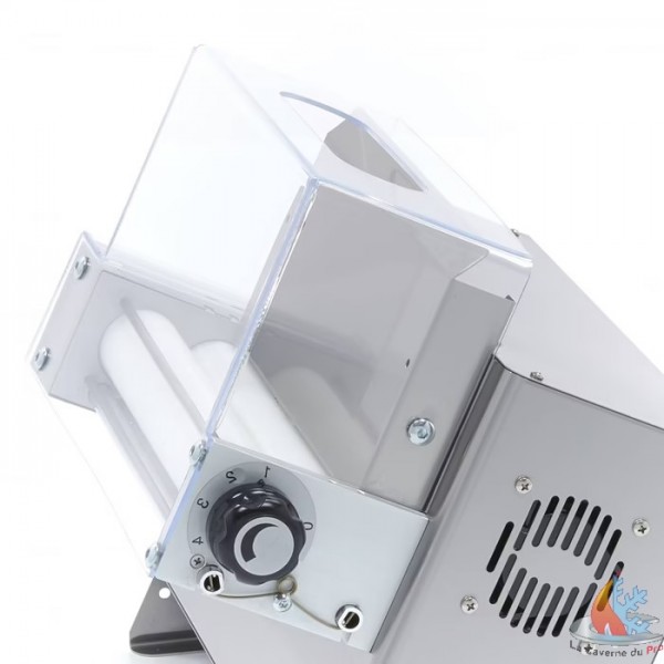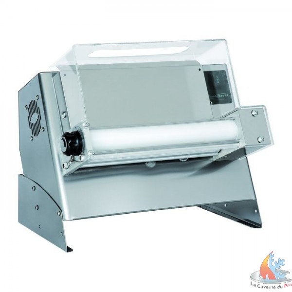 - Ce laminoir et simple est équipé d'un moteur durable et puissant. est doté d'une seule vitesse. Pour travailler en toute sécurité, il est équipé d'un couvercle de protection en plastique transparent et d'un interrupteur de sécurité. Les deux larges pieds en acier inoxydable assurent une bonne stabilité. Le boîtier est entièrement fabriqué en acier inoxydable et est très facile à nettoyer. Vous pouvez retirer les différentes parties de l'appareil et les essuyer avec un chiffon sec. N'utilisez pas d'eau, car les résidus de farine pourraient coller à l'appareil.