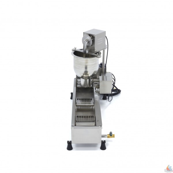 - La machine à donuts et automatique,  est une machine de haute qualité et convient parfaitement à une production élevée et à une utilisation quotidienne. La machine est facile à utiliser; vous versez la pâte dans le bol et à travers la forme de donut au fond, la pâte sort en forme de donut. Le donut se retrouve directement dans la friteuse. Une roue assure que la graisse de friture continue de bouger et les grilles de la poêle continuent de faire tourner le donut, de sorte que le donut soit bien frit et uniformément. La machine est en acier inoxydable, elle est donc durable et facile à nettoyer.