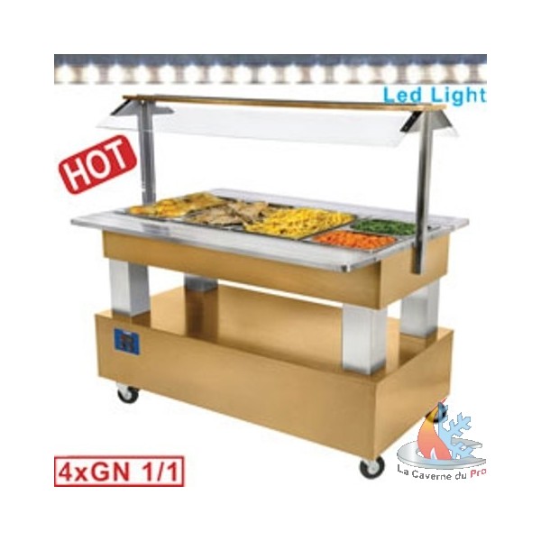 Buffet chauffant, bain marie, 4x GN 1/1-150 (chêne clair)