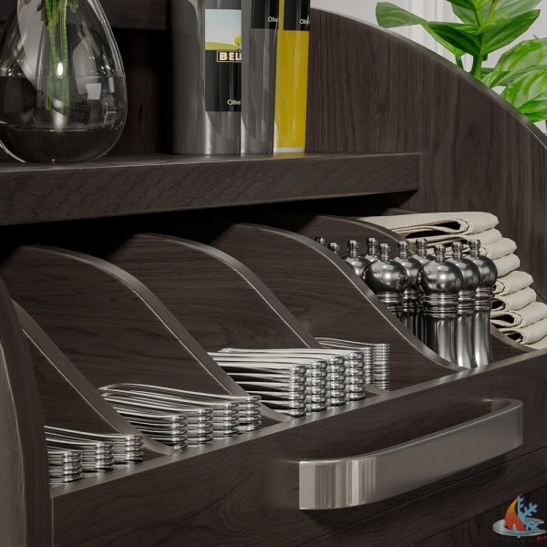 - Cette armoire à couverts est idéale pour obtenir le maximum d'espace de rangement. Il dispose de deux étagères et d'un tiroir à 6 compartiments.