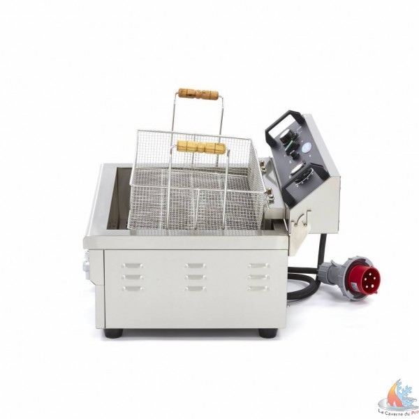 Friteuse 30L grande cuve AV égouttoir 6kw 400v L60,6xP57,5xH40,7 cm