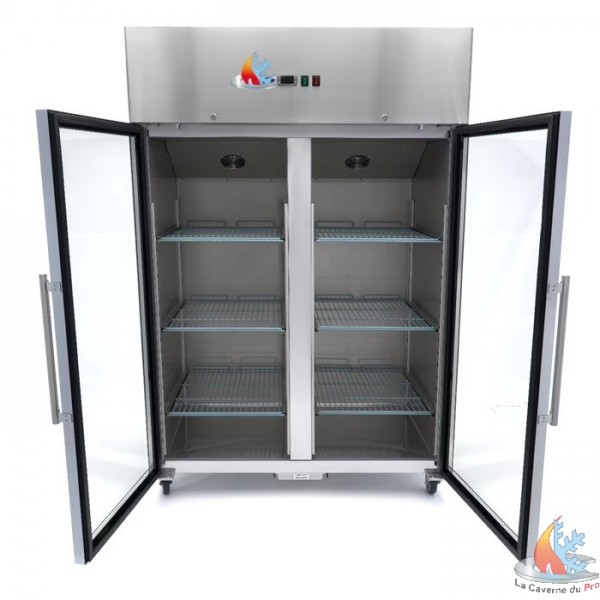 - Ce congélateur professionnel à 2 portes vitrée d'une capacité brute de 1200 litres est un atout pour toute grande cuisine de restauration. Le congélateur est équipé de deux portes à fermeture automatique, ce qui permet de sortir facilement les bons produits du congélateur. Les six étagères réglables en hauteur permettent de ranger de nombreux récipients GN 2/1. Ce congélateur professionnel est également équipé d'une serrure et deux clés sont fournies. A l'intérieur, vous trouverez un éclairage LED intégré pour que tous les produits soient visibles dans le congélateur.