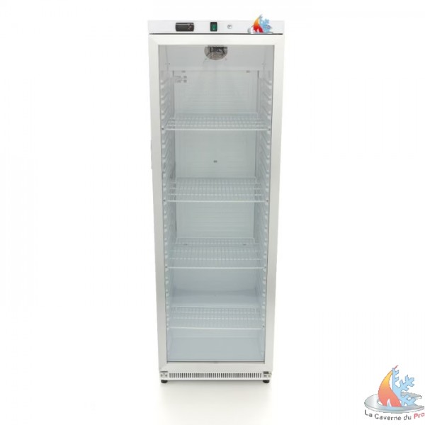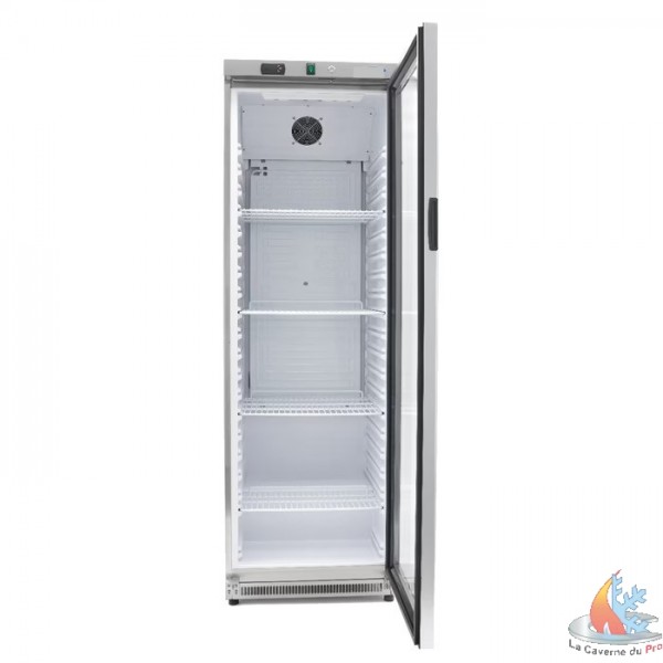 Ce réfrigérateur professionnel à porte vitrée a une capacité de 400 litres. Il est équipé d'une porte à fermeture automatique, d'un éclairage LED et de trois clayettes réglables en hauteur pour faciliter la personnalisation de votre aménagement. Grâce à ses quatre roues, vous pouvez également le déplacer au meilleur endroit dans la cuisine.