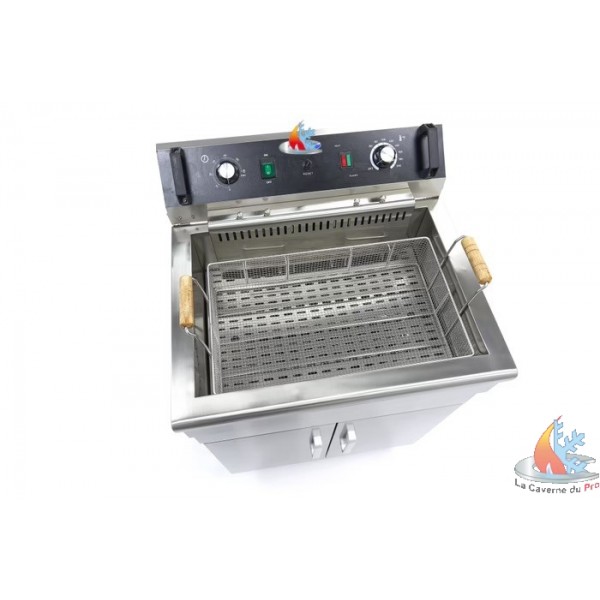 Friteuse 30 litres avec égouttoir  grande cuve 6kw 400v L60,6xP57,5xH91,5 cm
