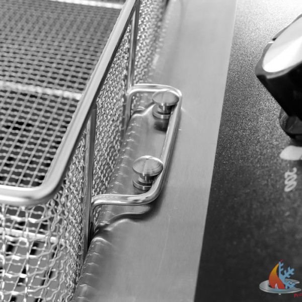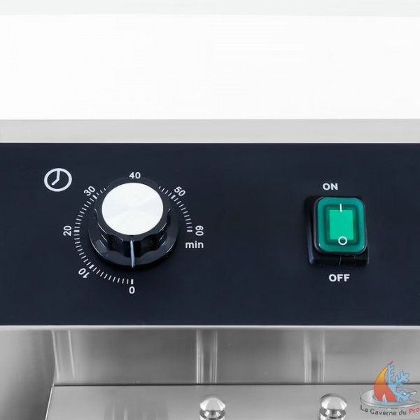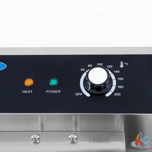 - La friteuse fonctionne sur un courant triphasé (400V) et est équipée d'une protection contre les surcharges. Grâce à la zone froide incluse dans le fond de la friteuse, vous pouvez réutiliser l'huile de friture à l'infini, sans que le goût des aliments frits n'en soit altéré. L'élément chauffant est placé à quelques centimètres au-dessus du fond du réservoir et, comme l'huile ne chauffe pas autant sous l'élément chauffant, les miettes brûlent moins vite. Ainsi, l'huile reste propre plus longtemps et vous ne devez pas la changer aussi souvent. La friteuse est également équipée d'un thermostat qui permet de régler la température entre 50 et 200°C. Grâce à la minuterie pratique, vous pouvez faire frire tous vos snacks au moment voulu sans craindre de brûler quoi que ce soit. De plus, la friteuse dispose d'un couvercle amovible pour éviter les éclaboussures d'huile. Les poignées sont résistantes à la chaleur et vous pouvez fixer la tablette fournie sur le côté pour récupérer les résidus de friture.