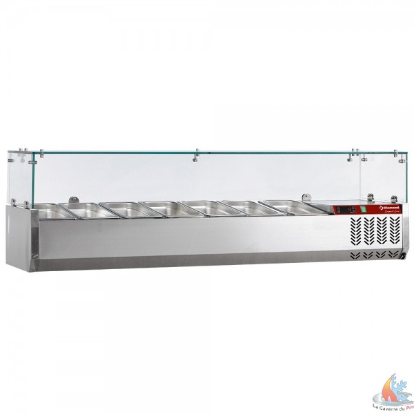 Vitrine réfrigérée 7 GN 1/4 150mm, 1600 x 340 x 225/435
