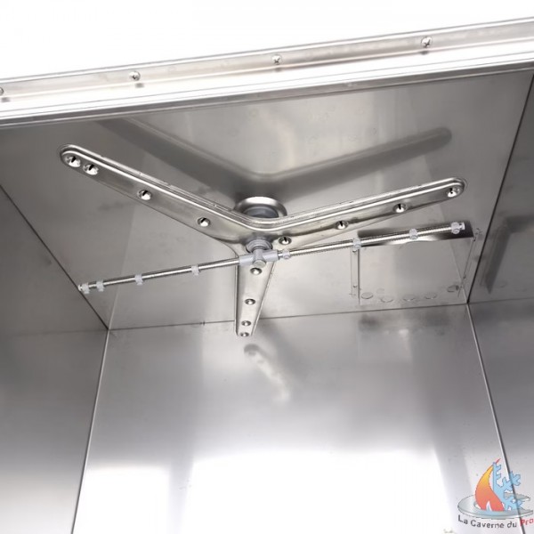 - Grâce à son boîtier en acier inoxydable, ce lave-vaisselle robuste est facile à nettoyer. L'acier inoxydable est également très résistant, de sorte que votre appareil ne risque pas d'être endommagé ou rayé. Les bras de lavage sont fabriqués en ABS spécial et se nettoient facilement avec un peu de savon et de l'eau chaude. Pour nettoyer l'intérieur, utilisez un détartrant et un produit de nettoyage spécial. Le lave-batterie est livré sans pompes de rinçage et de savon, mais des kits spéciaux peuvent être commandés sur le site web. Il n'y a pas de pompe de vidange car l'eau s'écoule naturellement. Veillez simplement à ce que le tuyau de vidange soit raccordé plus bas que la sortie.