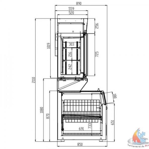 - Il offre de nombreuses possibilités et peut être placé contre un mur ou utilisé en îlot. L’armoire est dotée de tablette inférieure fixe et de clayettes réglables et inclinables, pour une meilleure présentation des produits vis-à-vis des clients.