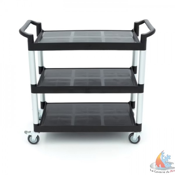 Ce chariot de service peut vous éviter de marcher et de soulever des objets, car vous laissez le chariot de service faire le travail. Il est idéal pour transporter et servir les repas. Le chariot de service est également très utile pour débarrasser la cuisine de la vaisselle sale. Ce chariot de service professionnel est équipé de deux étagères en plastique.