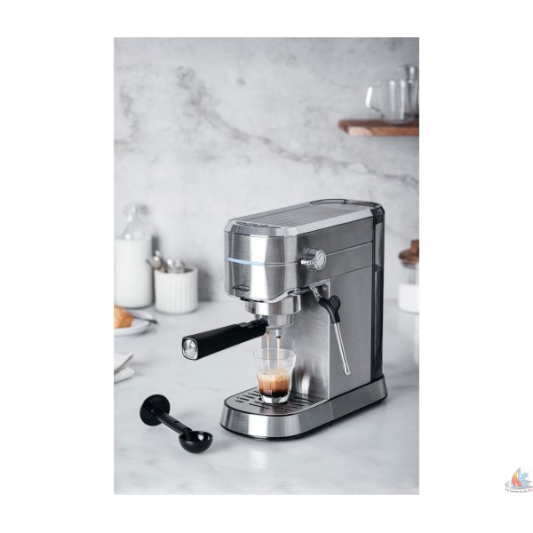- Obtenez un café parfait et rapide grâce à sa puissance de 1450 W et ses 20 barres de pression.