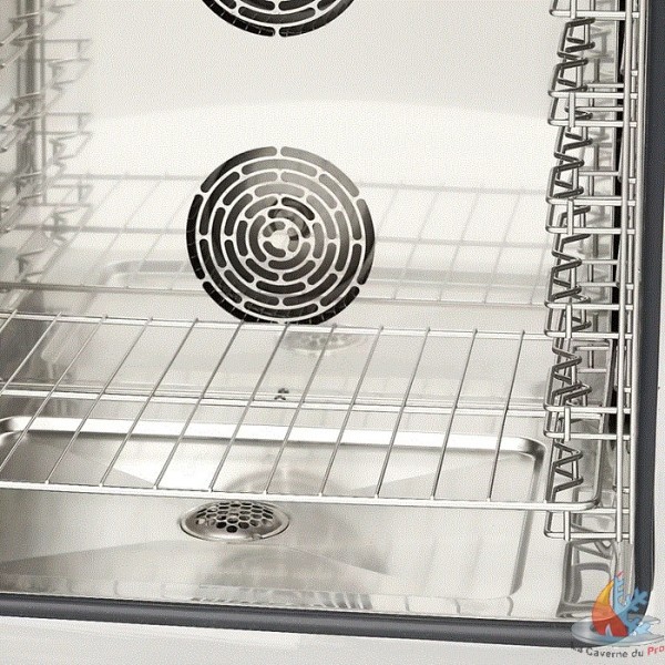 - Avec ce four mixte digital, vous pouvez cuire à la vapeur de la viande, du poisson ou des légumes et conserver les vitamines, la saveur et la couleur plus longtemps qu'avec d'autres méthodes de cuisson. La cuisson à la vapeur empêche également les aliments de se dessécher et leur donne une belle apparence dans les assiettes de vos invités. La combinaison de l'air chaud et de la vapeur fait de ce four à vapeur mixte un appareil de cuisine polyvalent qui vous permet de remplacer de nombreux ustensiles de cuisine. Ce four mixte est idéal pour les plaques GN 1/1 ou les plaques à pâtisserie de 60 x 40 cm. Il peut accueillir jusqu'à dix plateaux à la fois.