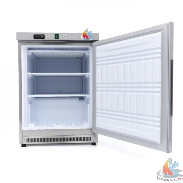 - Ce congélateur professionnel a une capacité brute de 200 litres pour conserver les produits surgelés. Grâce à sa taille compacte, en acier inoxydable s'intègre dans presque toutes les cuisines professionnelles. Deux étagères permettent de stocker tout ce dont vous avez besoin. Les clayettes sont fixes et munies d'une grille pour améliorer la ventilation. La porte est munie d'une serrure pour plus de commodité.