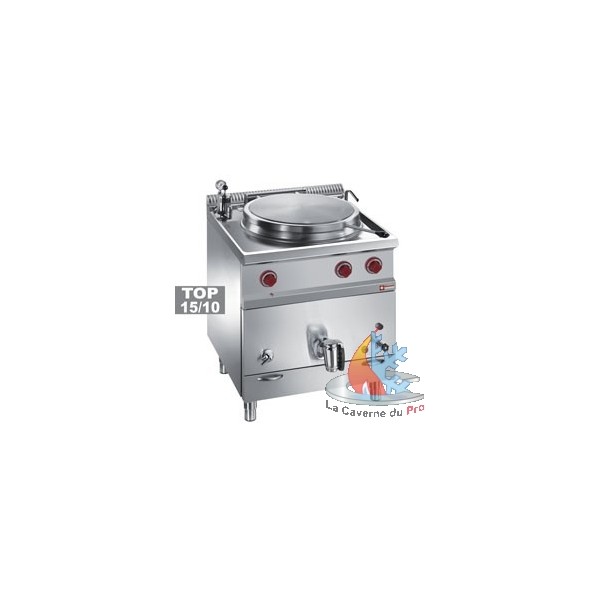 Cuisson uniforme et à bonne température grâce à la cuve à double enveloppe. De série avec voyant de surveillance du niveau d'eau de la double enveloppe et robinet de vidange démontable permettant un graissage et un entretien sans outils. TOP avec large emboutissement périphérique permettant la récolte liquides et condensat. Sur demande: couvercle avec double parois.