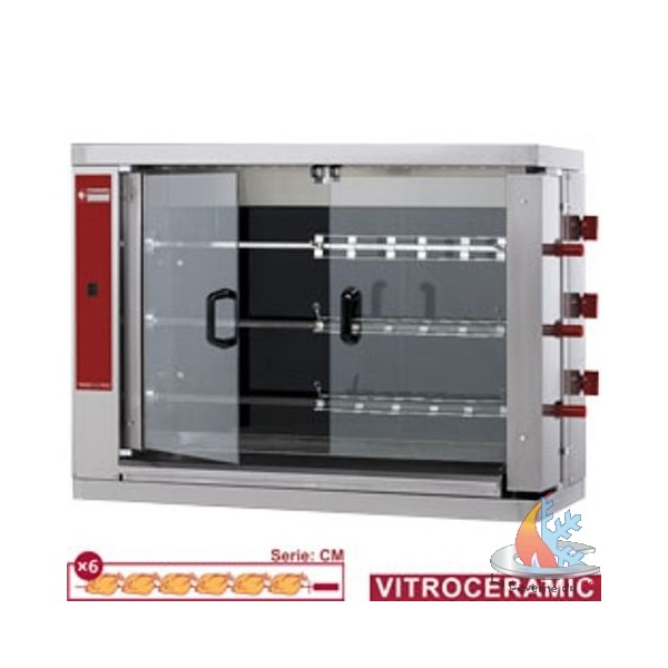 Rôtissoire à poulets 400v vitrocéramique, 3 broches (18 poulets)